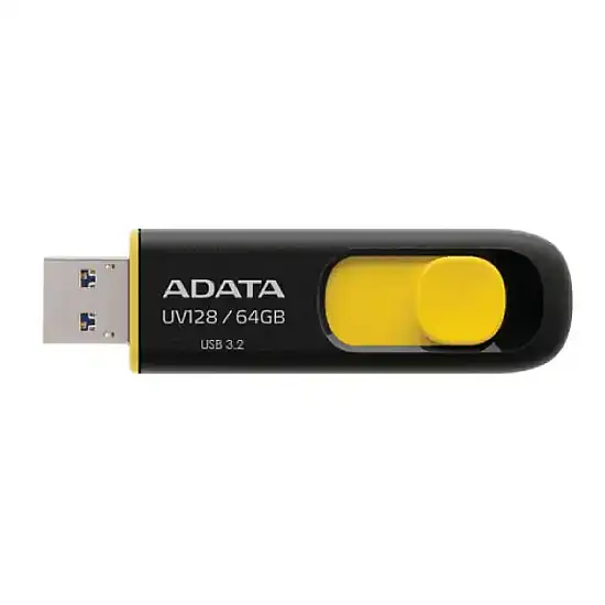 - Capacity: 64GB at Adata UV128 64GB Black-Yellow USB 3.2 Pen Drive